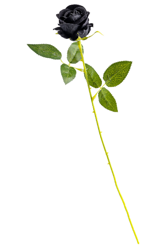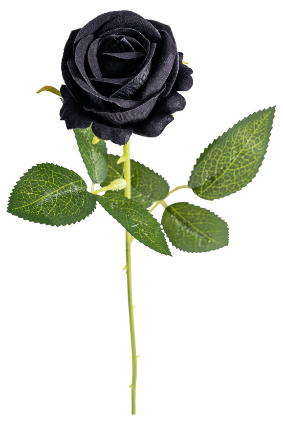 Черна роза с височина 50 см е подходящ аксесоар към вашия тоалет за Хелоуин, парти, карнавал, училищни празненства и всякакви забавления.