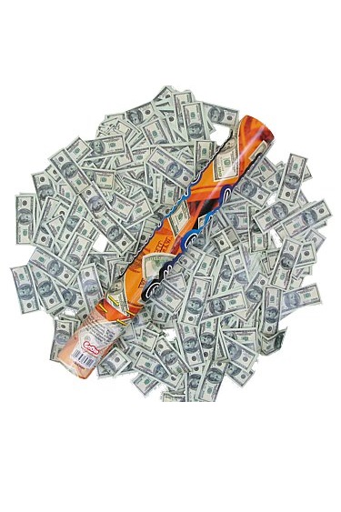 Конфета със сгъстен въздух - висока 28 см, която изхвърля банкноти от 100 Долара на 5-8 метра височина. Подходяща за парти и карнавал. ИНСТРУКЦИИ ЗА БЕЗОПАСНОСТ: Продукт подходящ за употреба на закрито и открито. Хванете здраво с две ръце и завъртете долния край на конфетата по посока обратно на часовниковата стрелка! 1. Конфетата се изстрелва под ъгъл от 80 градуса. При ветровито време трябва да насочите конфетата по посока на вятъра за по-добро разпръскване на хартиените лентички! 2. Да не се съхранява в близост до източници на топлина. Не излагайте на пряка слънчева светлина за продължителен период от време! Не позволявайте прегряване! 3. Не насочвайте срещу хора или животни! 4. Пазете от удари и падания! Съдържа контейнер с въздух под налягане! Забранено за употреба от лица под 12 години!