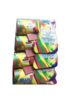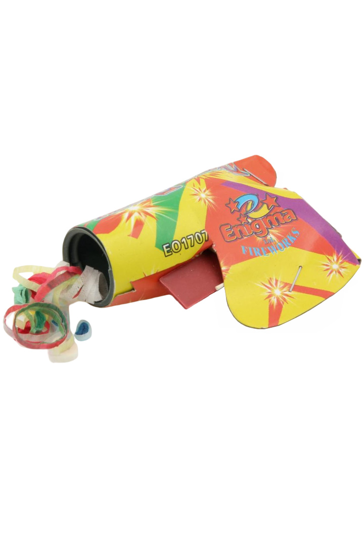 Конфета Пистолетче със спусък - диаметър на дулото 2,5 см и дължина 9 см, която разпръсква цветни хартиени ленти. Предлага се в комплект от 4 броя в опаковка. Подходящи за Рожден ден, парти и карнавал. ИНСТРУКЦИИ ЗА БЕЗОПАСНОСТ: Продукт подходящ за употреба на закрито и открито. Дръжте на една ръка разстояние, далеч от очите и ушите! Насочете настрани от тялото си и от други хора и животни. Натиснете спусъка силно и рязко! Задължителен родителски контрол! Неправилната употреба може да доведе до нараняване. Да се съхранява на сухо и проветриво място. Забранено за употреба на лица под 12 год.