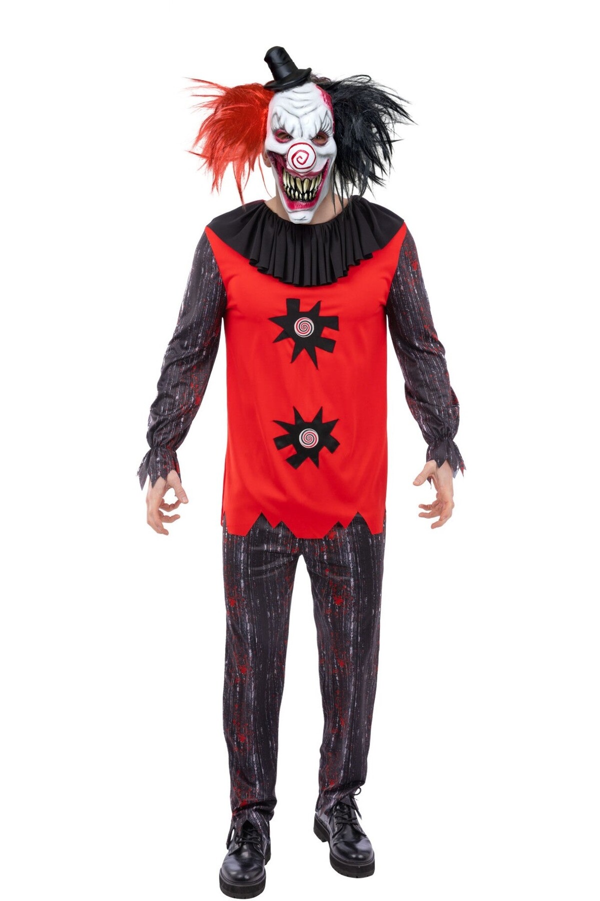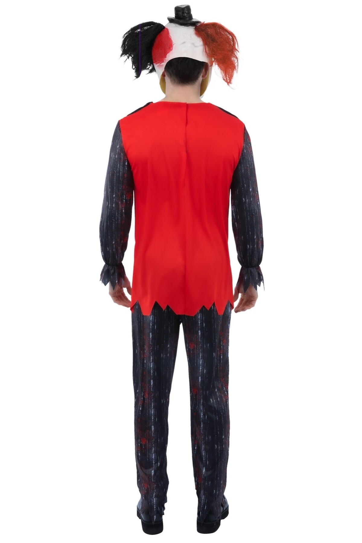 Мъжки костюм кикотещ се Шут се състои от блуза, панталони и маска, изработени от плат и латекс. Подходящ за Хелоуин, парти, карнавал, училищни празненства и забави. Предлага се в размери M, L и XL. | Размер | M | L | XL | | Гръдна обиколка | 97-102 см | 107-112 см | 117-122 см | | Талия | 81-86 см | 91-97 см | 102-107 см | | Крачол (вътр. страна) | 83 см | 84 см | 84 см |