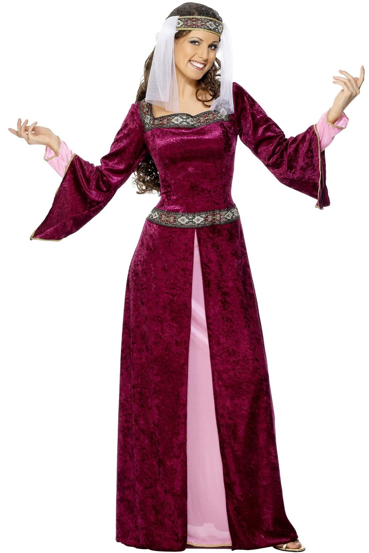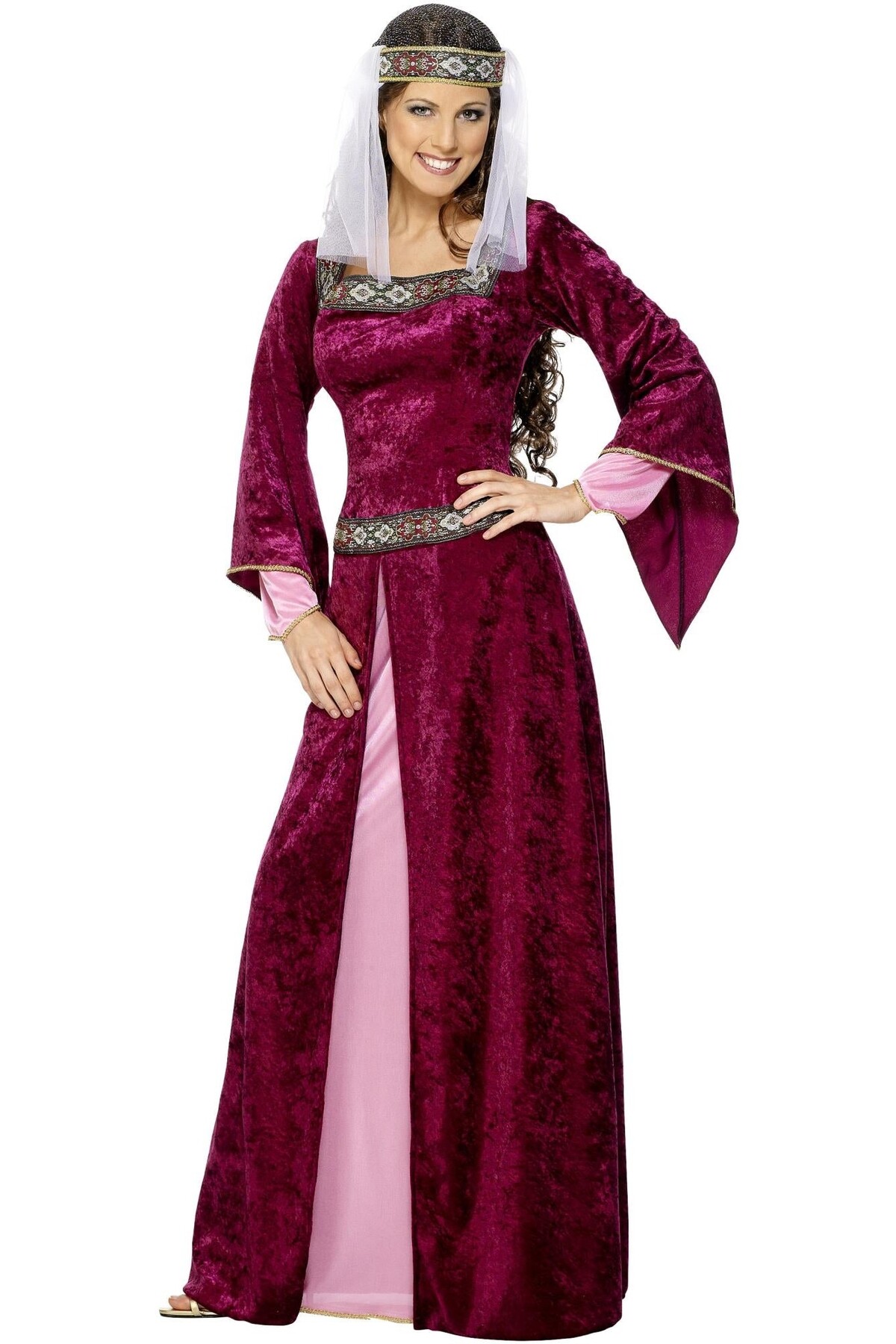 Дамски костюм Средновековна девойка Марион се състои от рокля в цвят бургунди и лента за глава с воал, изработени от плат. Подходящ за Хелоуин, Коледа, Нова Година, парти, карнавал, училищни празненства и забави. Предлага се в размер S, M, L, X1 и X2. | Размер | S (36-38) | M (40-42) | L (44-46) | X1 (48-50) | X2 (52-54) | | Бюст | 88-90 см | 94-98 см | 102-107 см | 112-117 см | 121-127 см | | Талия | 67-70 см | 75-77 см | 81-86 см | 91-97 см | 101-106 см | | Ханш | 94-97 см | 100-104 см | 108-113 см | 119-124 см | 129-134 см |