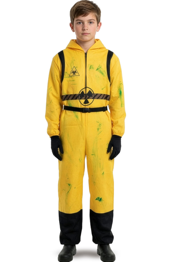 Детски костюм Radioactive се състои от гащеризон с качулка и колан, изработени от плат. Подходящ за Хелоуин, парти, карнавал, училищни празненства и забави. Предлага се в размер VIII. | Размер | V | VI | VII | VIII | | Години | 6-7 г | 8-9 г | 10-11 г | 12-13 г | | Височина | 126 см | 138 см | 148 см | 158 см | | Рамене - земя | 106 см | 118 см | 128 см | 138 см | | Ръкав | 47 см | 52 см | 54 см | 56 см | | Дължина панталон | 72 см | 78 см | 85 см | 92 см |