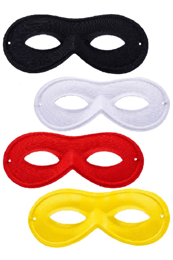 Домино обло без нос е изработено от плат. Предлага се в 4 цвята - бяло, червено, черно и жълто. Подходящо е за Хелоуин, маскарад, училищни празненства, парти, бал с маски и забави.