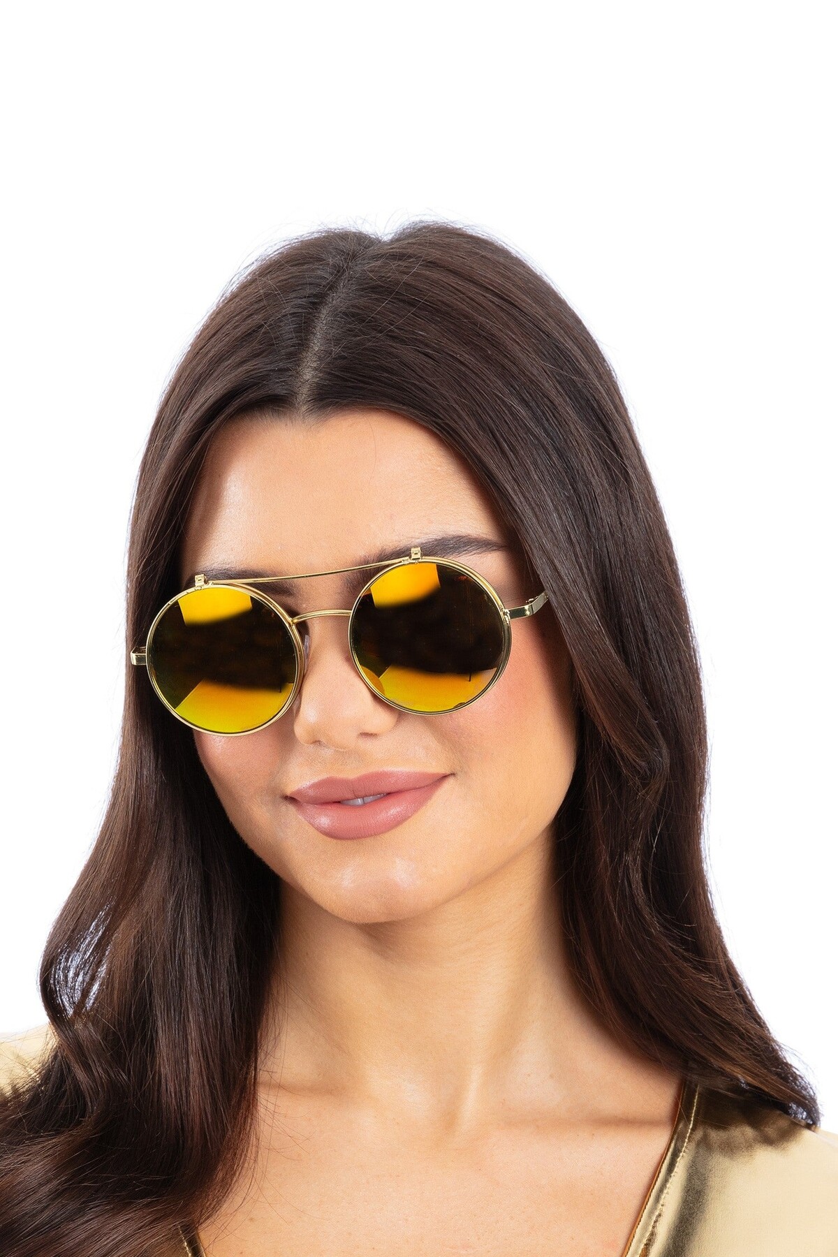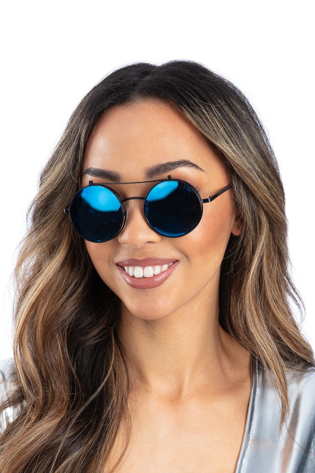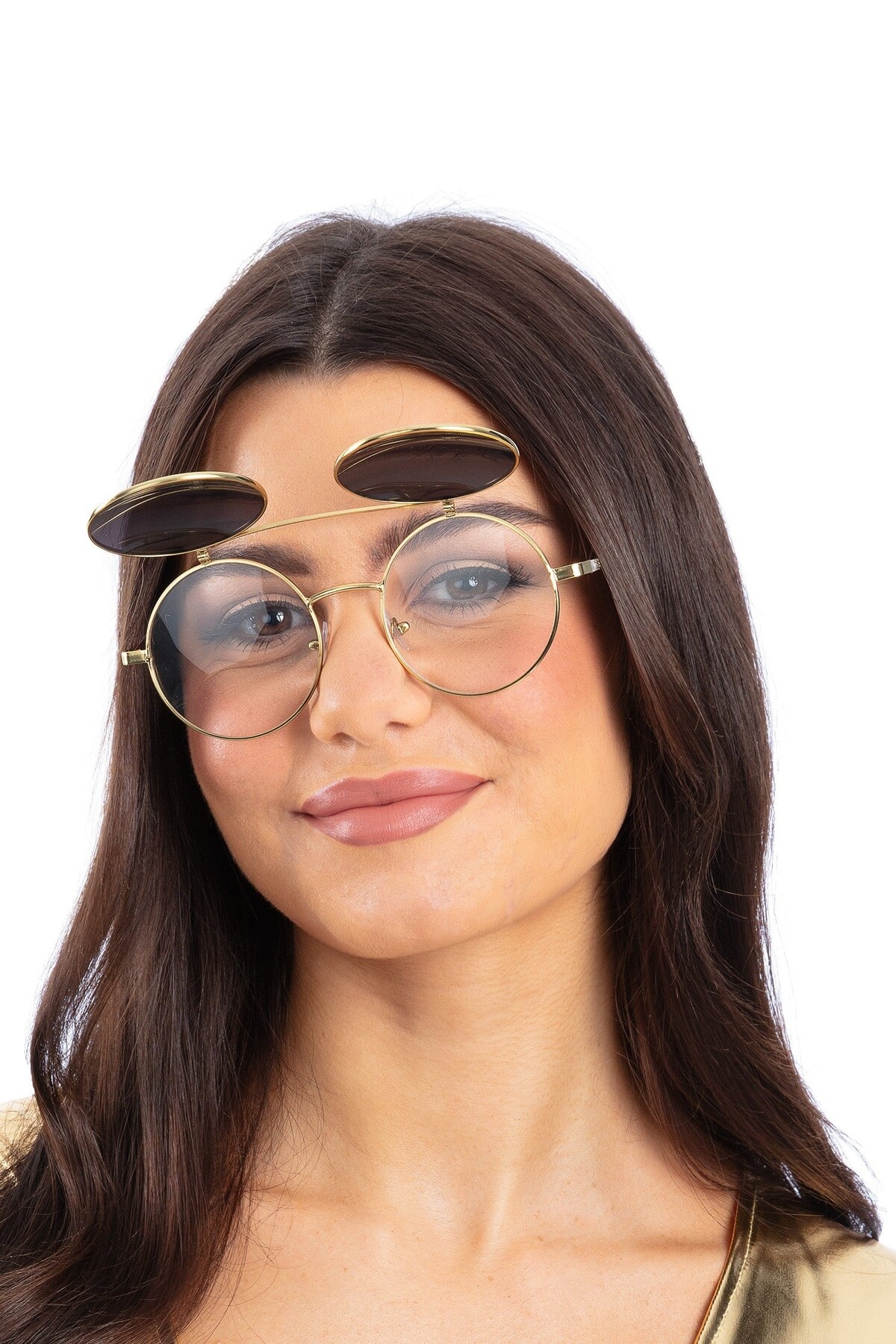 Очила Кръгли с двойна, повдигаща се рамка се предлагат в два цвята - сини и златни. Подходящ аксесоар за Хелоуин, парти, карнавал, училищни празненства и всякакви забавления.