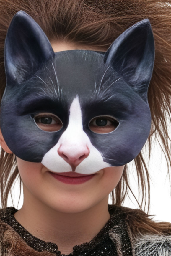 Маска Котка, детска е изработена от плат. Подходяща е за Хелоуин, маскарад, училищни празненства, парти, бал с маски и забави.