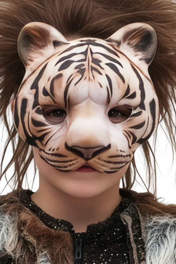 Маска Тигър, детска е изработена от плат. Подходяща е за Хелоуин, маскарад, училищни празненства, парти, бал с маски и забави.