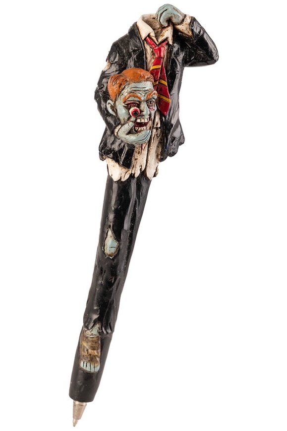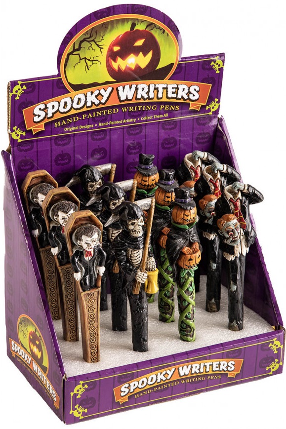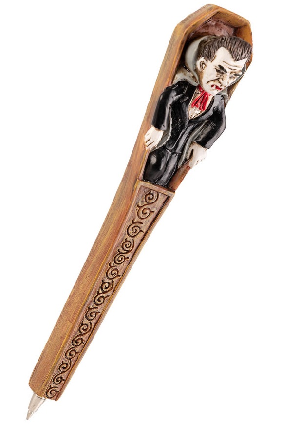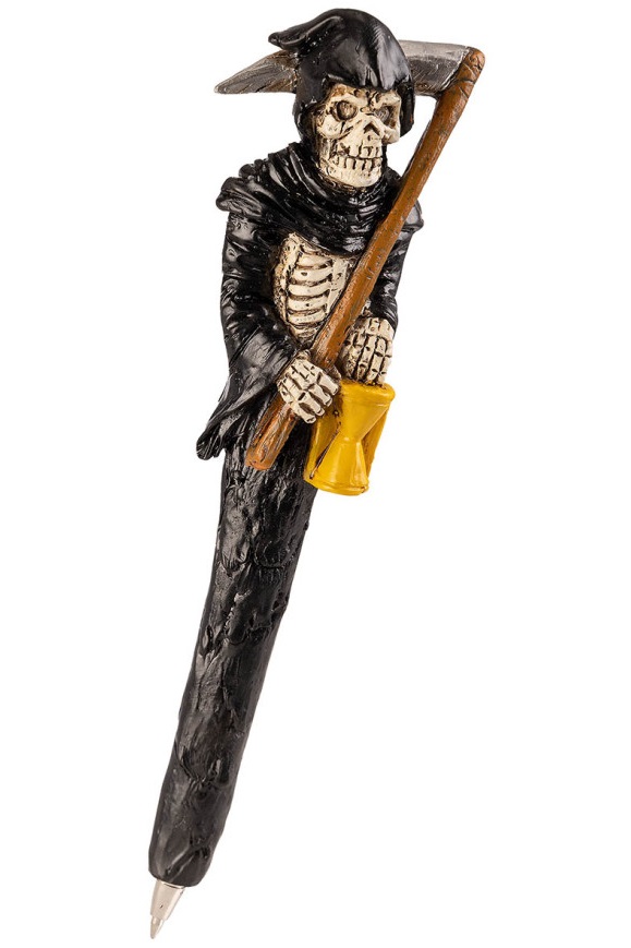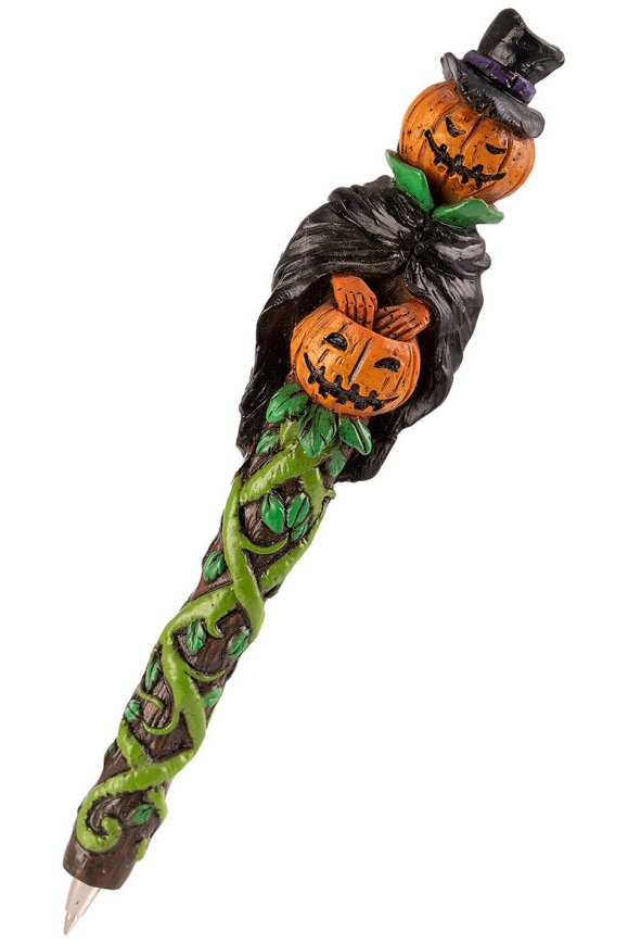 Ефектна химикалка с Хелоуин мотиви и черно мастило. Предлага се в четири варианта - Вампир, Смърт, Зомби или Тиква. Подходящ подарък за Хелоуин или други поводи.