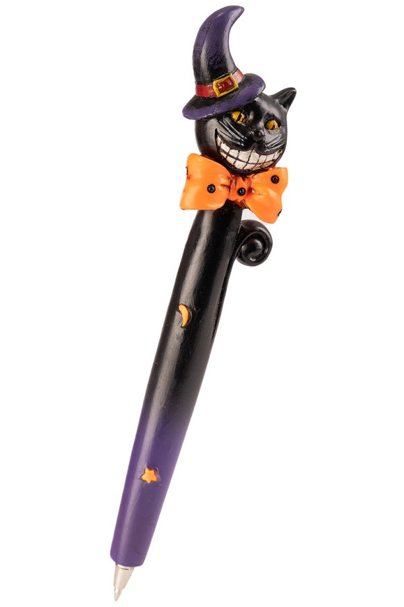 Ефектна химикалка с Хелоуин мотиви и черно мастило. Предлага се в четири варианта - Котка, Дух, Вещица или Тиква. Подходящ подарък за Хелоуин или други поводи.