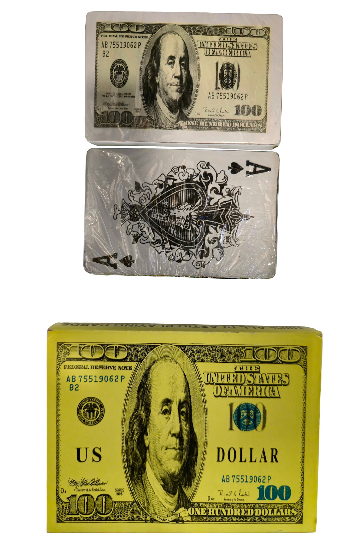 Карти за игра Долари, комплект от две тестета с размери 8,6 х 5,7 см. Страхотен подарък за рожден ден, имен ден, Трифон Зарезан и други поводи.