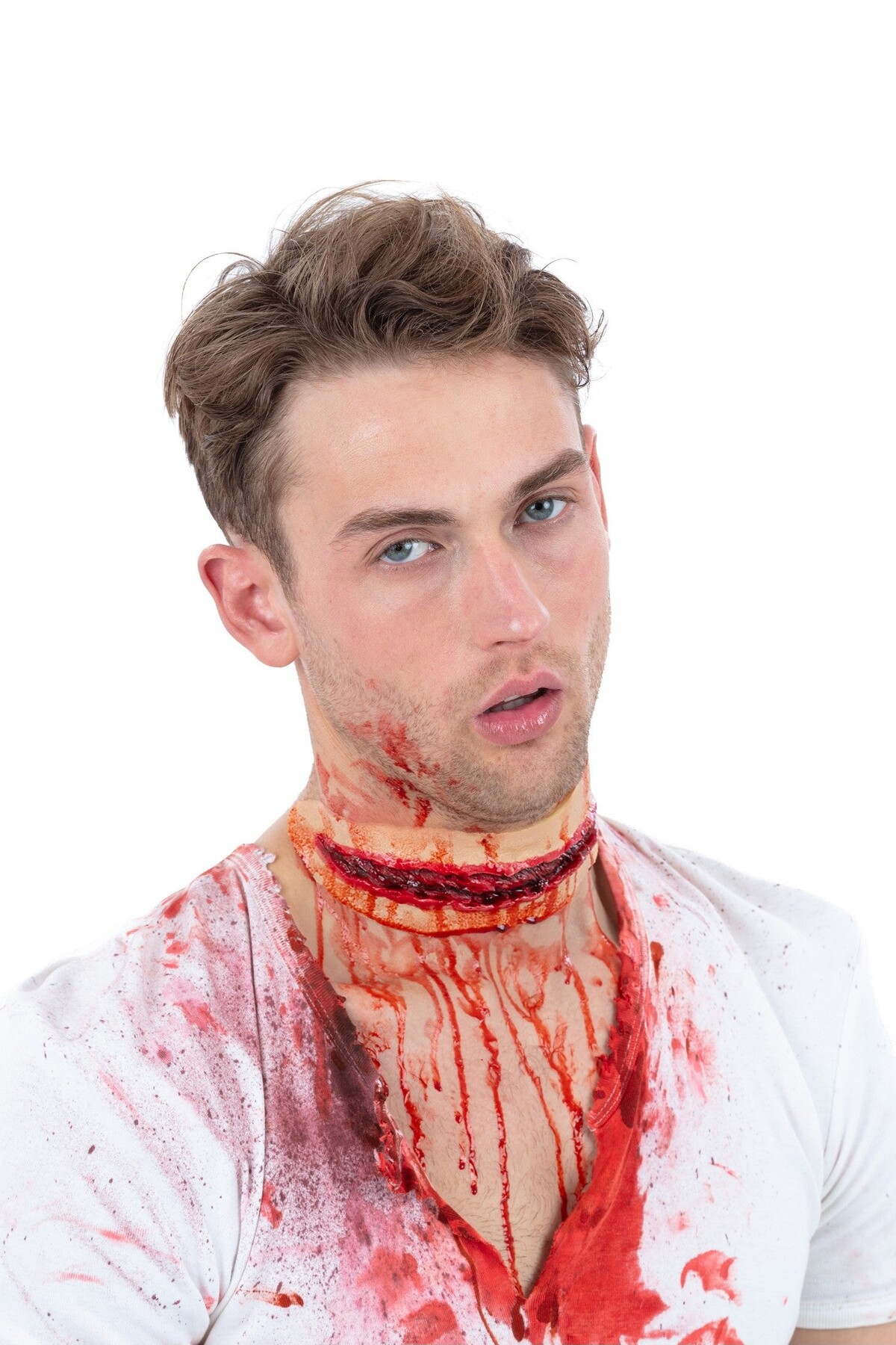 Релефна татуировка, имитираща рана - прерязано гърло се предлага в комплект с 1 мл течно лепило за кожа. Изработена от натурален каучуков латекс. Особено ефектен и бърз начин да се включите в празнуването на Хелоуин. Начин на употреба: 1. Залепете татуировката с помощта на лепилото в комплекта (върху чиста и суха кожа). 2. За по-добър ефект се снабдете с грим и изкуствена кръв, които да приложите около и върху татуировката.