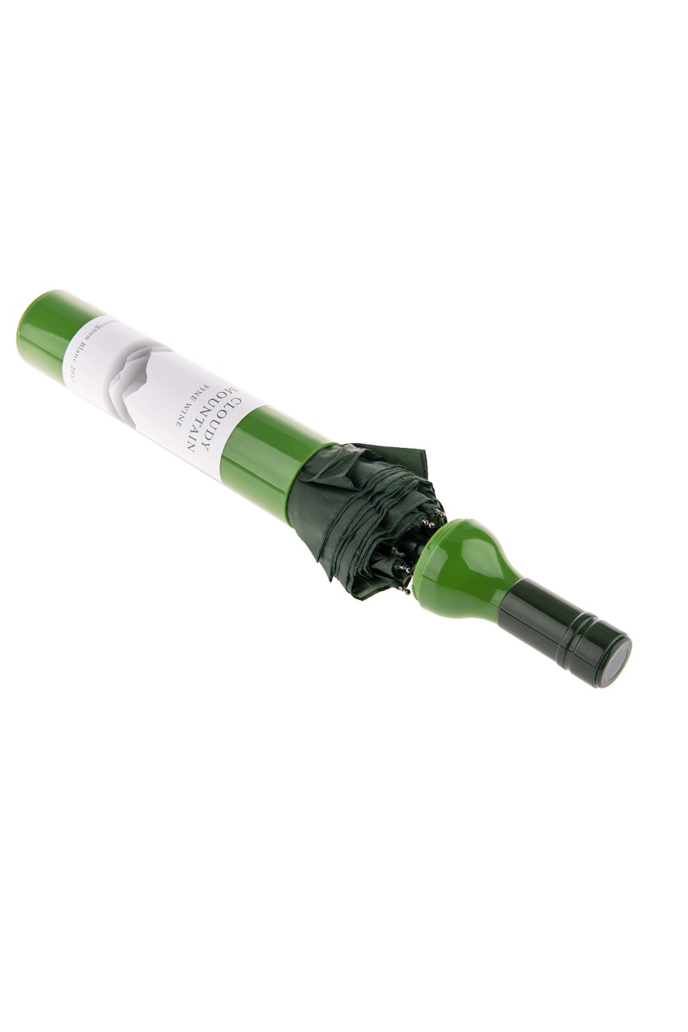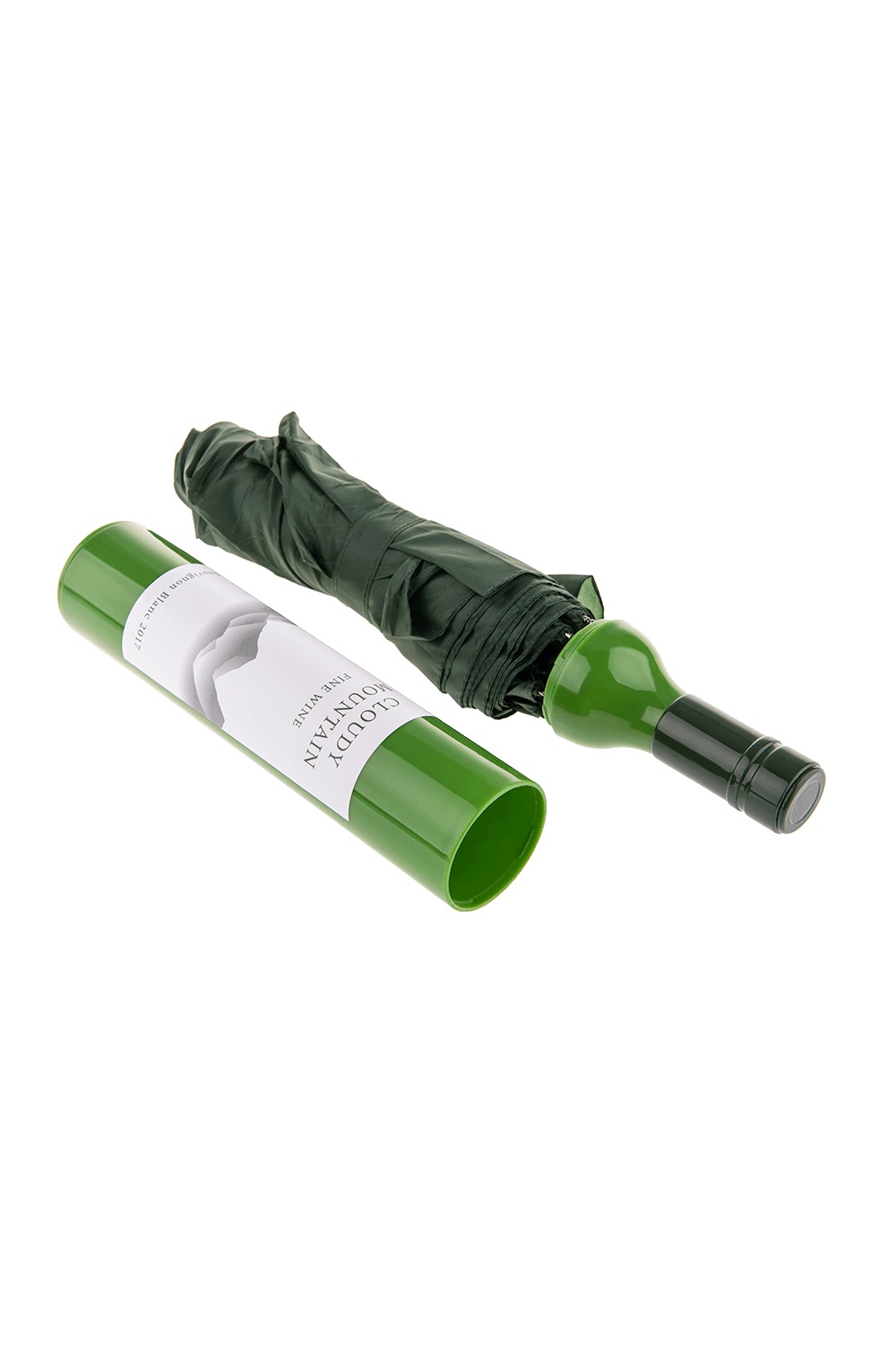 Джобен Чадър в Бутилка Бяло Вино - зелен с диаметър 90 см. Подходящ аксесоар за слънчев или дъждовен ден, парти, карнавал и забавен подарък за любителите на вино.