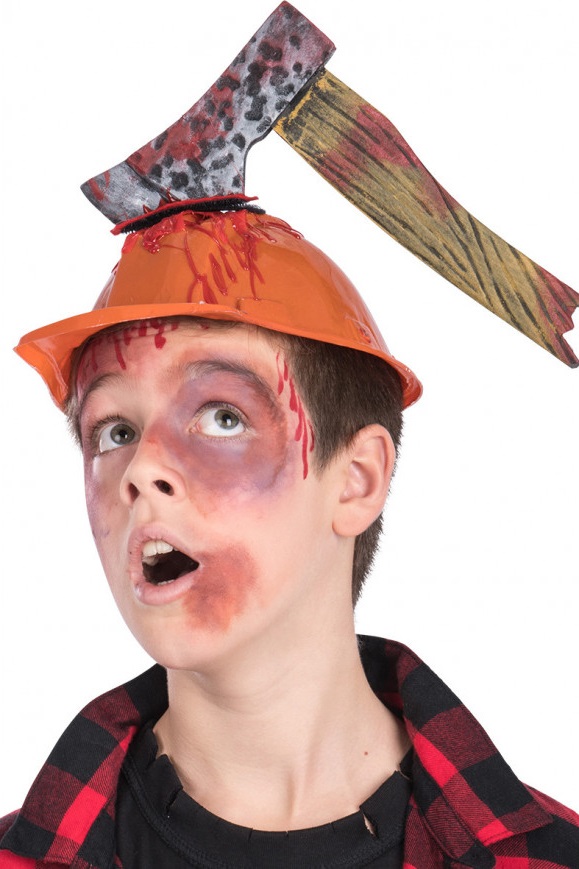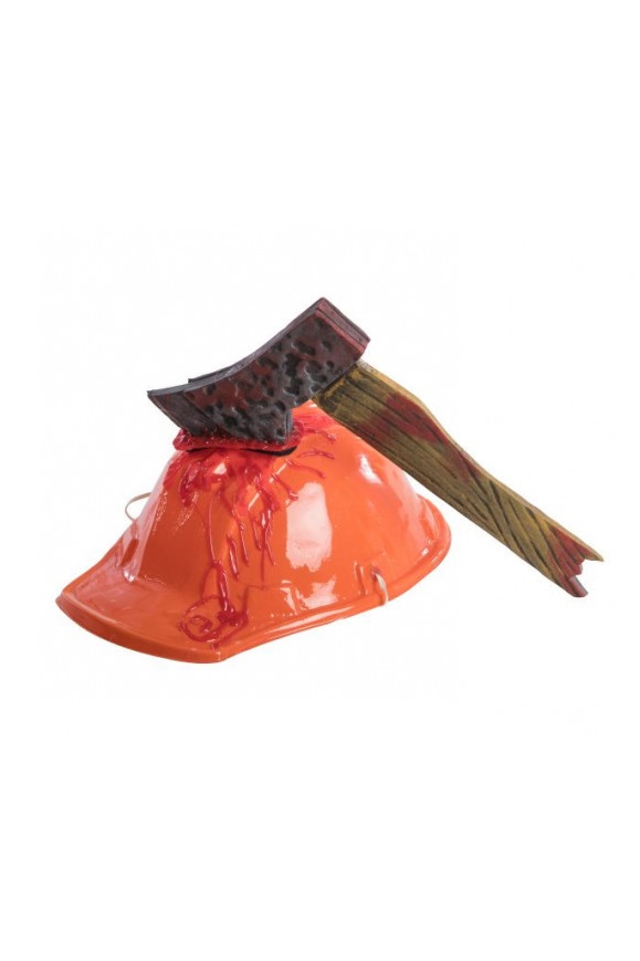 Каска със забита брадва в главата и кръв е изработена от пластмаса. Подходяща аксесоар за Хелоуин, Рожден ден, парти, карнавал, училищни празненства и всякакви забавления.